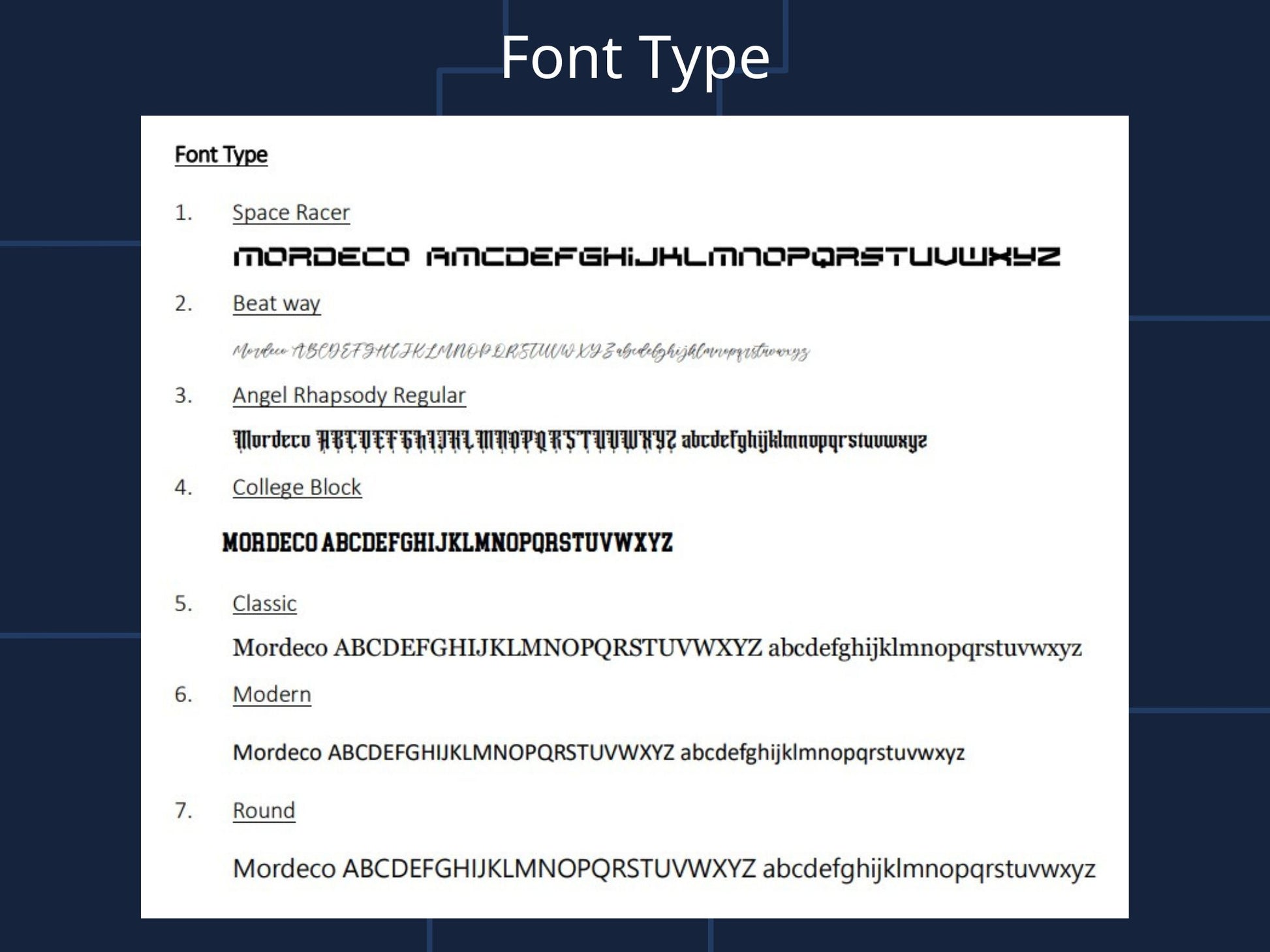 - Enter Text (With Outline 6 characters MAX) (Without Outline 8 characters MAX)